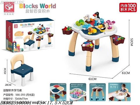 Moonlight blue - plum blossom - large building block table (including 100 particles and 1 table and 1 chair)